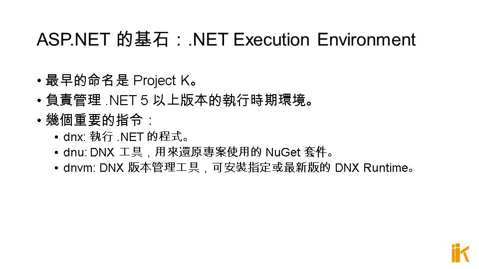 dnx: 執行 .NET 的程式。