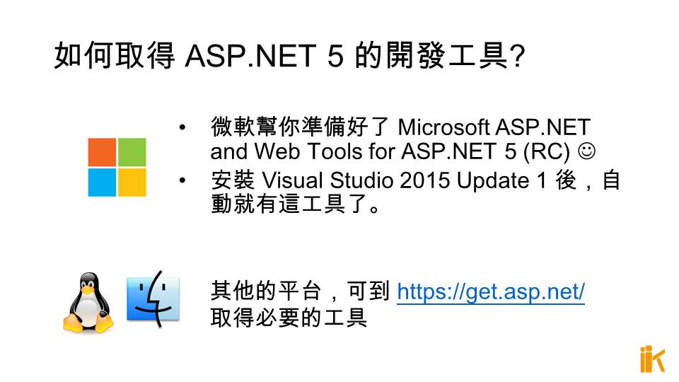 如何取得 ASP.NET 5 的開發工具?