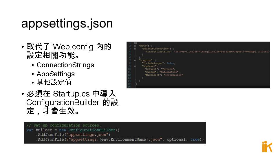取代了 Web.config 內的設定相關功能。