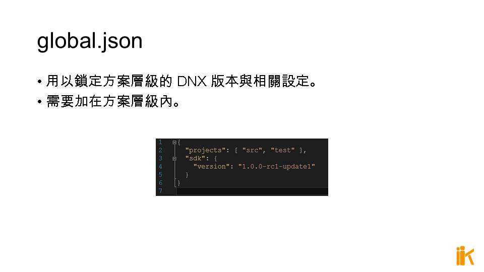 用以鎖定方案層級的 DNX 版本與相關設定。