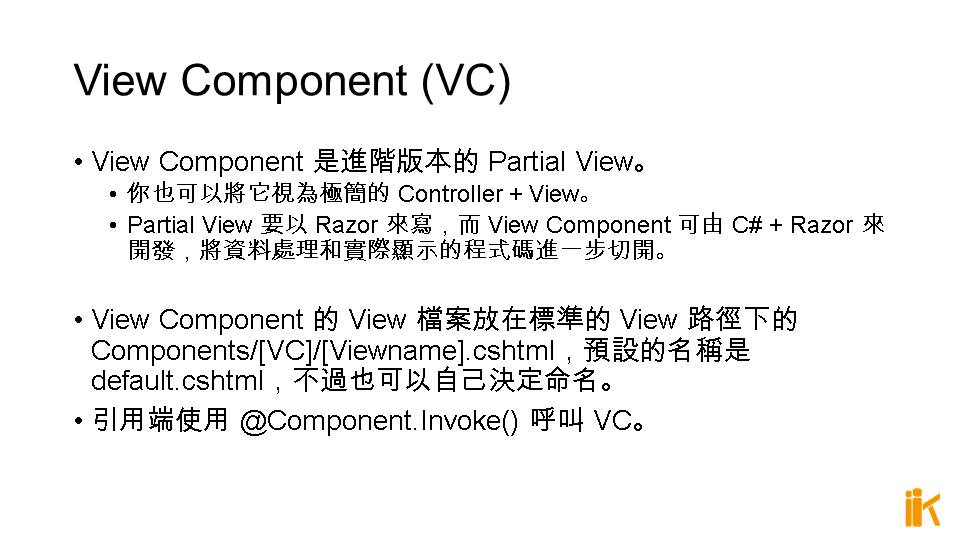 View Component 是進階版本的 Partial View。