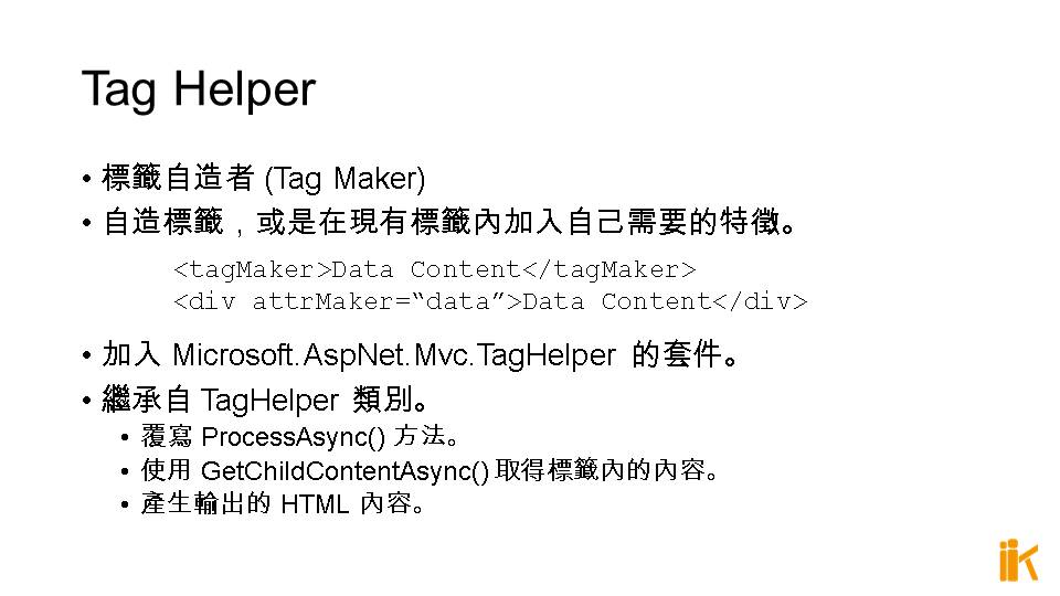 繼承自 TagHelper 類別。