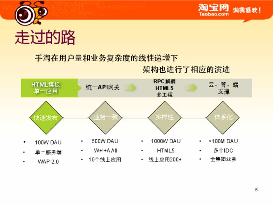 ⼿手淘在⽤用户量和业务复杂度的线性递增下