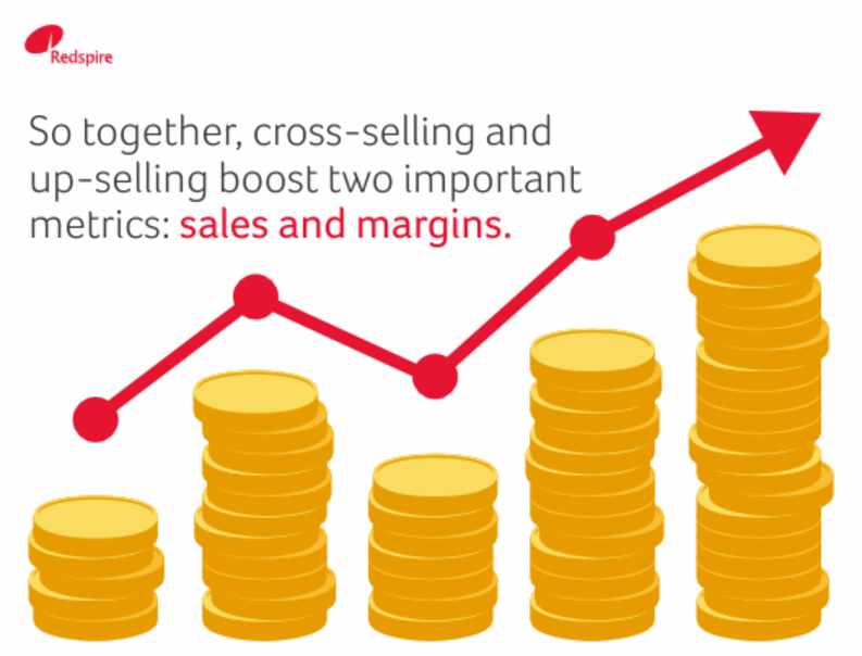 So together, cross-selling and up-selling boost two important metrics: sales and margins.
