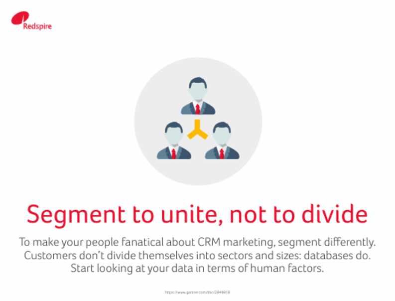 To make your people fanatical about CRM marketing, segment differently. Customers don’t divide themselves into sectors and sizes: databases do.