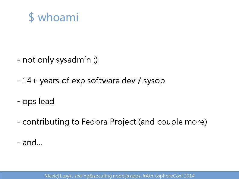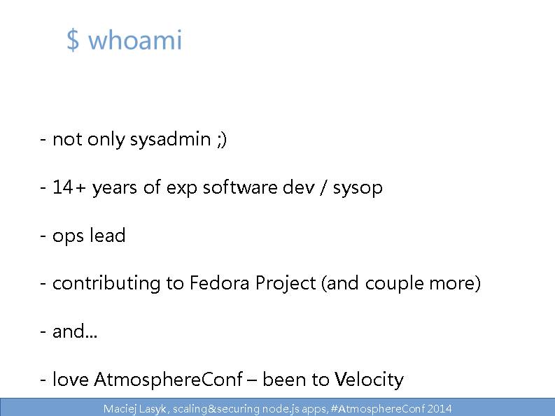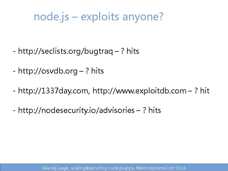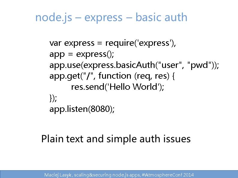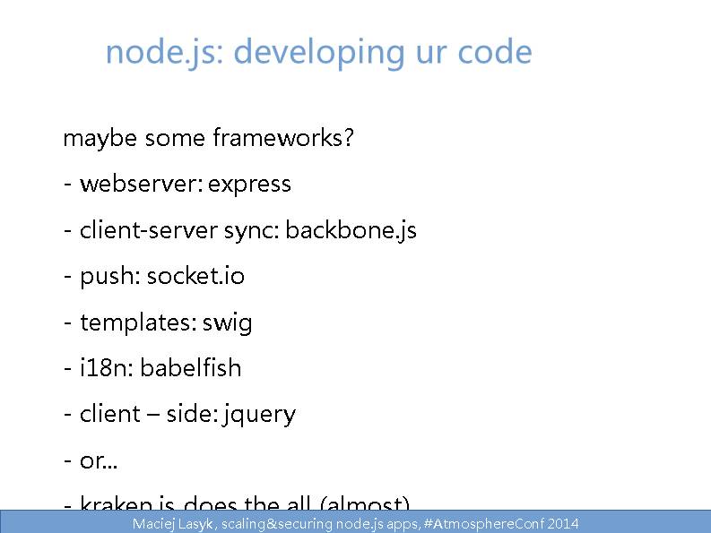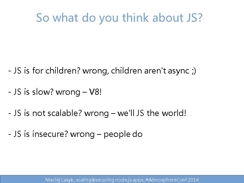 Maciej Lasyk, scaling&securing node.js apps, #AtmosphereConf 2014