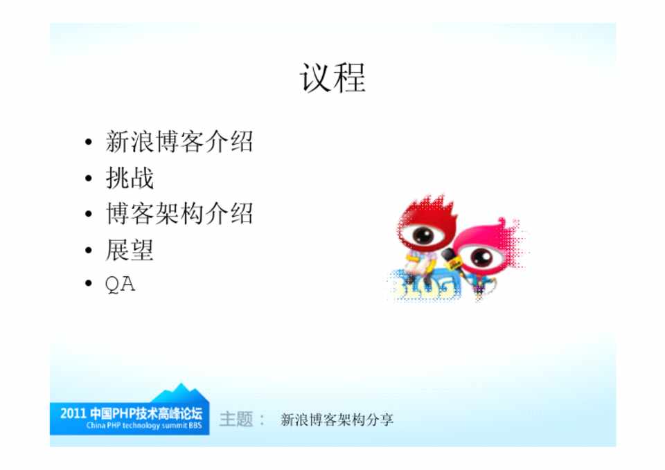 • 新浪博客介绍 • 挑战 • 博客架构介绍 • 展望 • QA