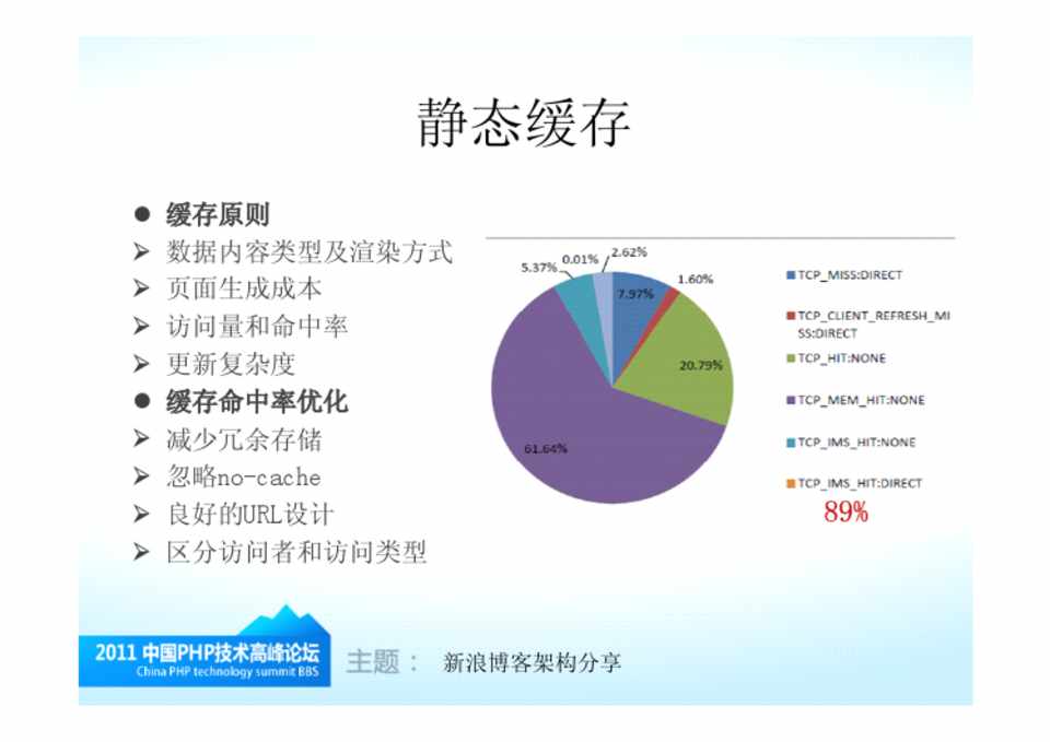 � 缓存原则 � 数据内容类型及渲染方式 � 页面生成成本 � 访问量和命中率 � 更新复杂度 � 缓存命中率优化 � 减少冗余存储 � 忽略no-cache � 良好的URL设计 � 区分访问者和访问类型
