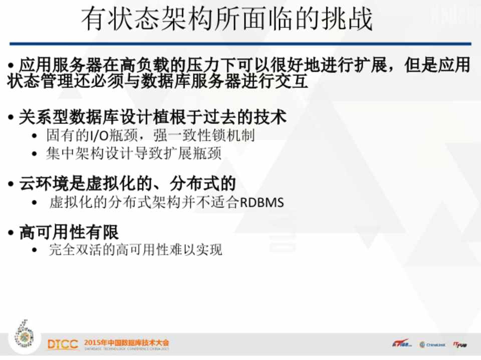 • 应用服务器在高负载的压力下可以很好地进行扩展,但是应用 状态管理还必须与数据库服务器进行交互