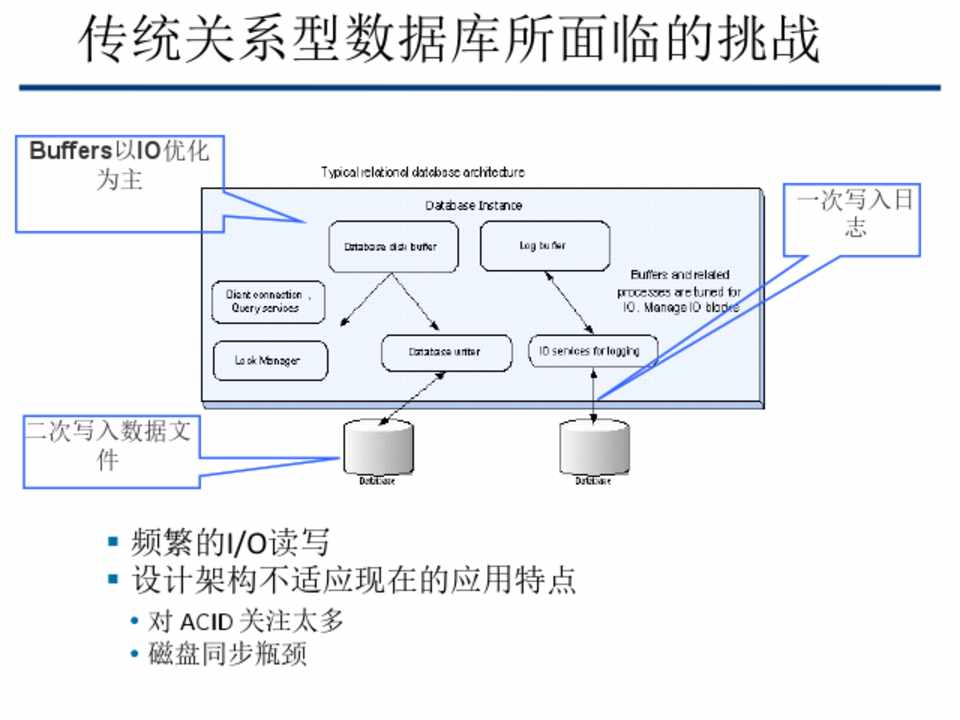 • 对 ACID 关注太多 • 磁盘同步瓶颈
