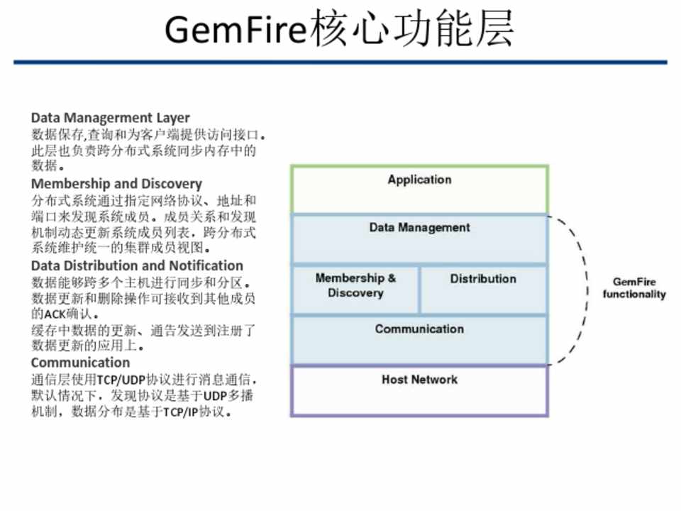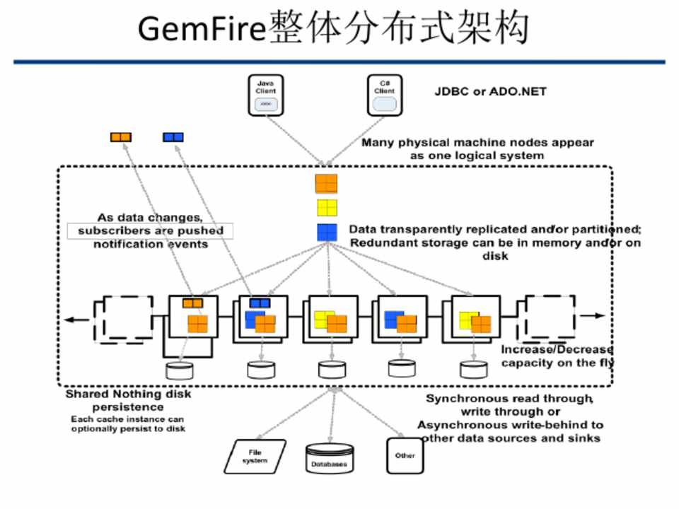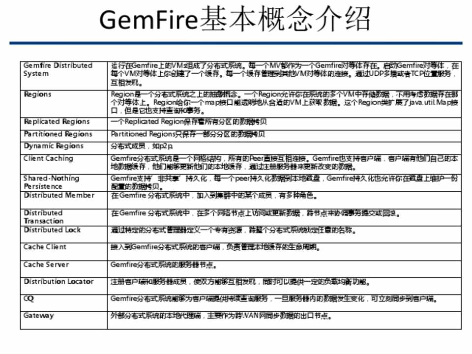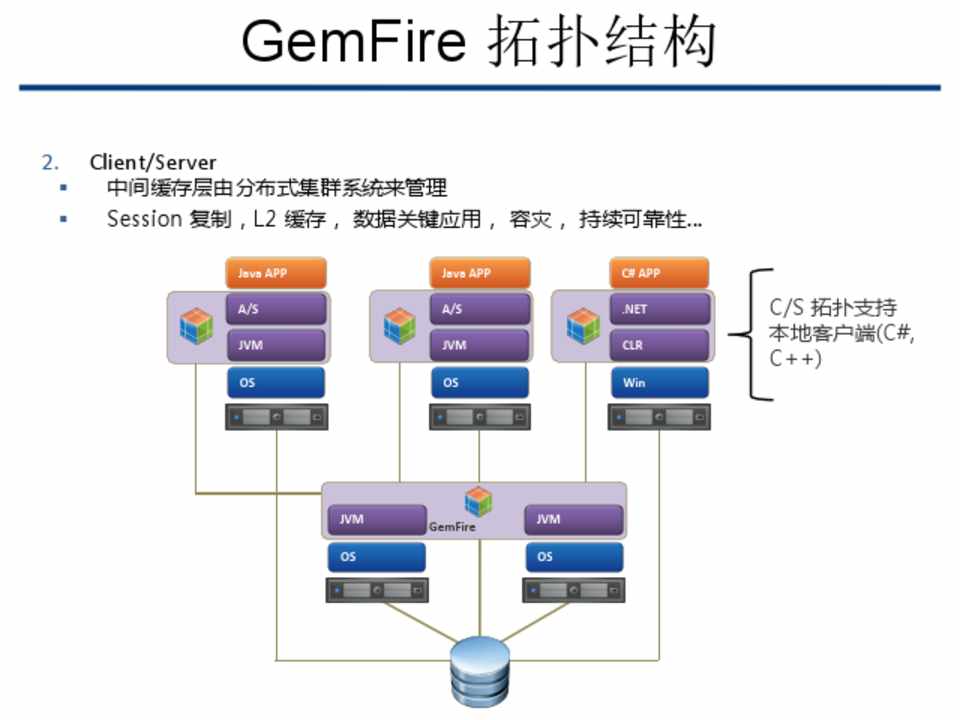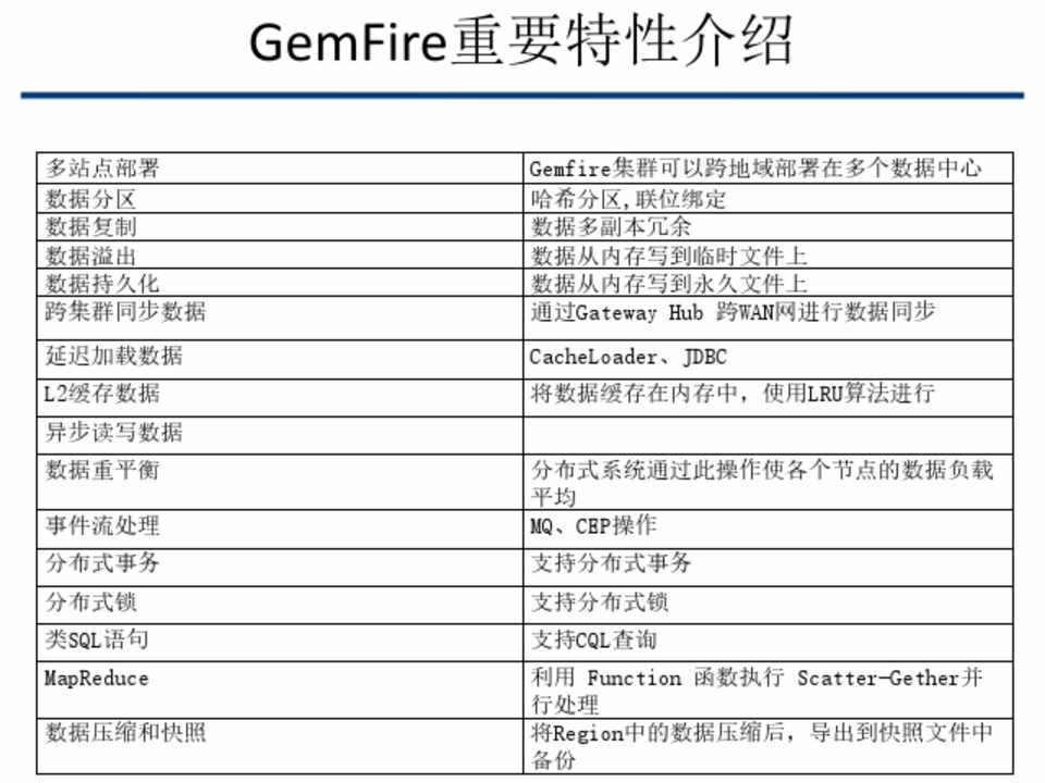 • 同时Gemfire是一个分布式数据库,可以将数据访问的请求分散到集群 中,有效降低了单个服务器的负荷