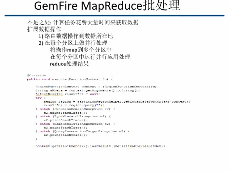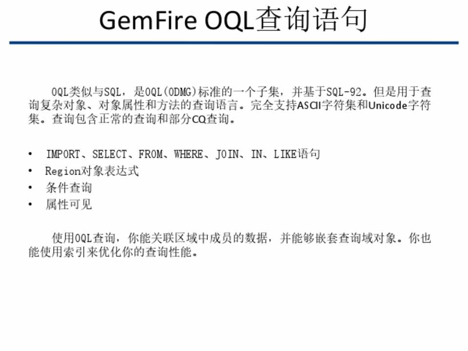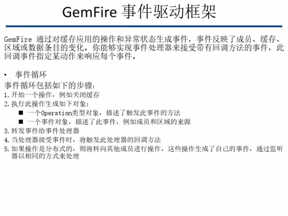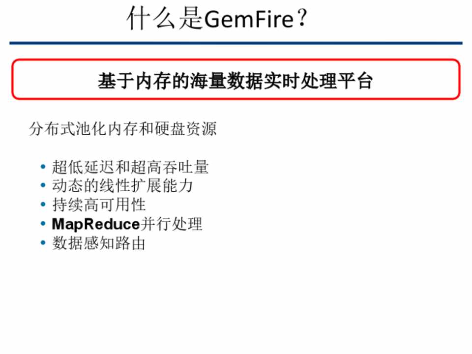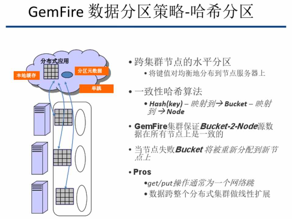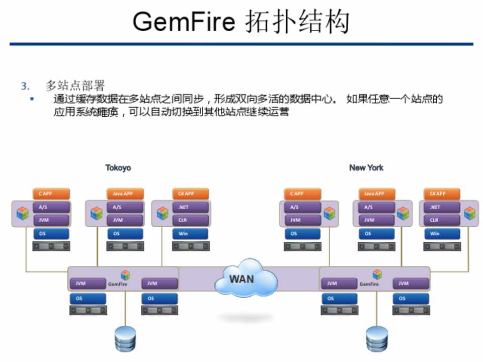 • 同时Gemfire是一个分布式数据库,可以将数据访问的请求分散到集群 中,有效降低了单个服务器的负荷