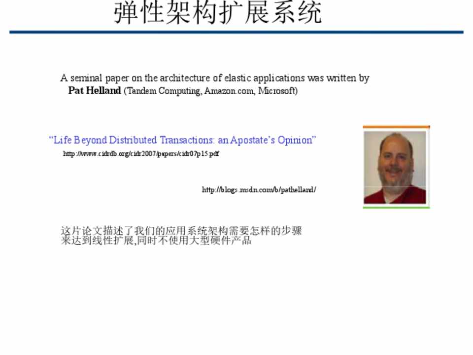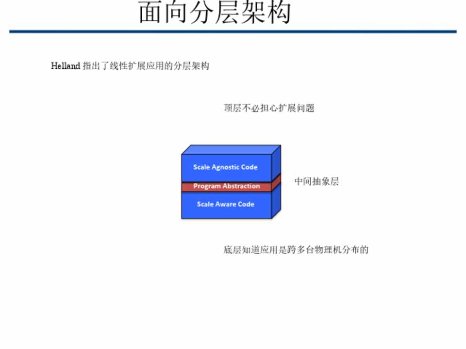 Helland 指出了线性扩展应用的分层架构 顶层不必担心扩展问题