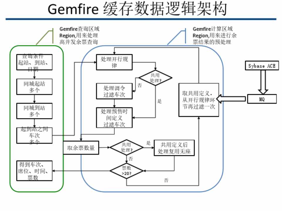 Gemfire计算区域 Region,用来进行余 票结果的预处理