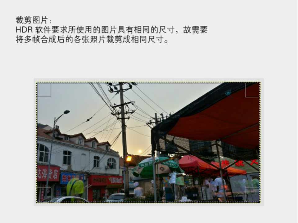 裁剪图片: HDR 软件要求所使用的图片具有相同的尺寸,故需要