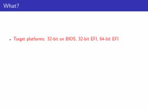 Target platforms: 32-bit on BIOS, 32-bit EFI, 64-bit EFI