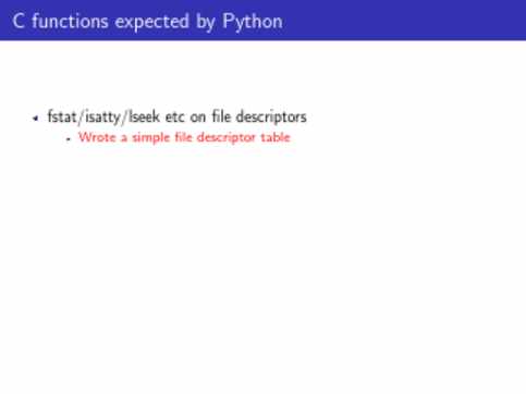 fstat/isatty/lseek etc on file descriptors Wrote a simple file descriptor table