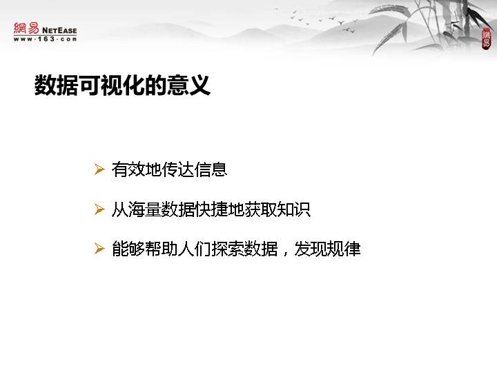 这是一个信息社会,海量的数据正从各行各业中爆发出来(如股市,互联网),如何有效的从这些数据中发觉出有价值的信息来帮助我们了解蕴含在数据后面的规律和模式,根据这些规律来指导决策显得尤为重要,但是对一般人而言海量数据显得冷冰冰的,不容易操纵,而数据可视化为用户提供了一个非常形象的展现形式,并且一系列的交互操作能够和用户产生高度的互动,用户是带着疑问的,通过自己探索,让数据来告诉你答案