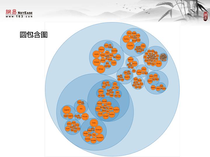 常用于社交网络中的标签云,或新闻关键词的可视化等