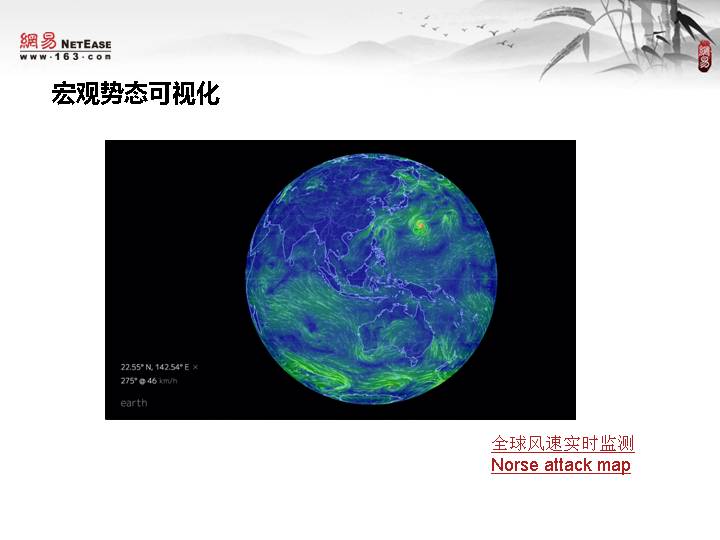 态势可视化是在特定环境中对随时间推移而不断动作并变化的目标实体进行觉察、认知、理解,最终展示整体态势。此类大数据可视化应用通过建立复杂的仿真环境,通过大量数据多维度的积累,可以直观、灵活、逼真地展示宏观态势,从而让非专业人士很快掌握某一领域的整体态势、特征