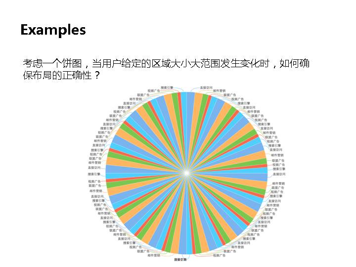 考虑一个饼图,当用户给定的区域大小大范围发生变化时,如何确保布局的正确性?