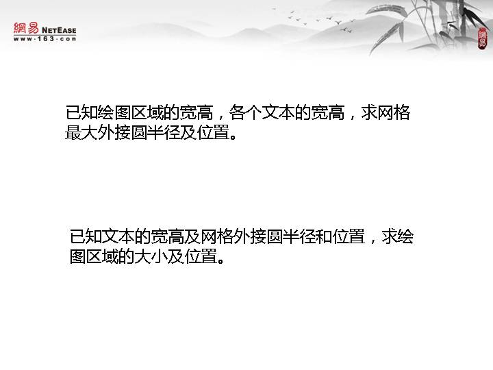 已知绘图区域的宽高,各个文本的宽高,求网格最大外接圆半径及位置。