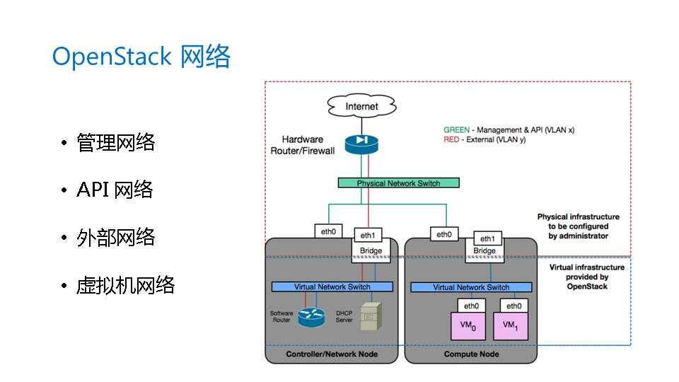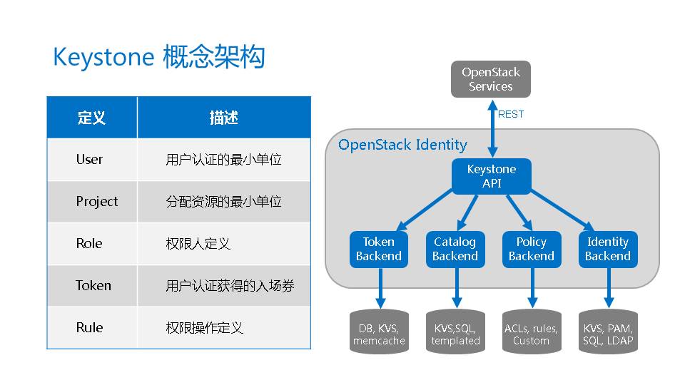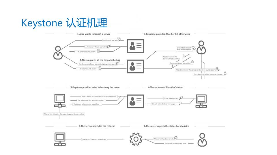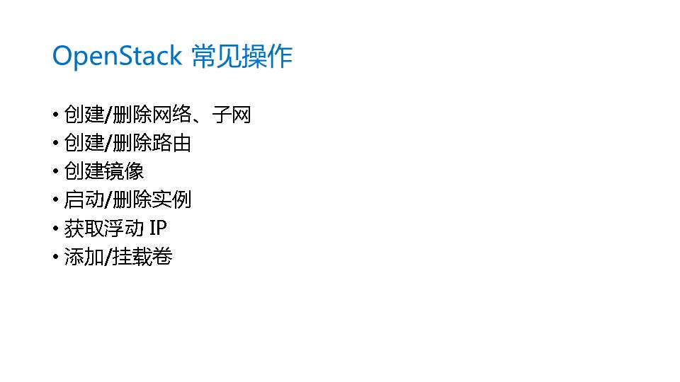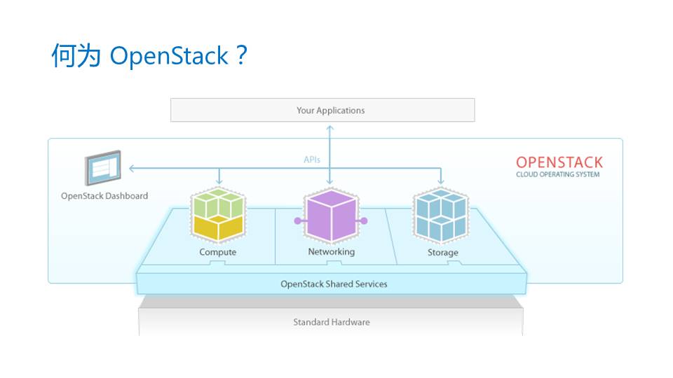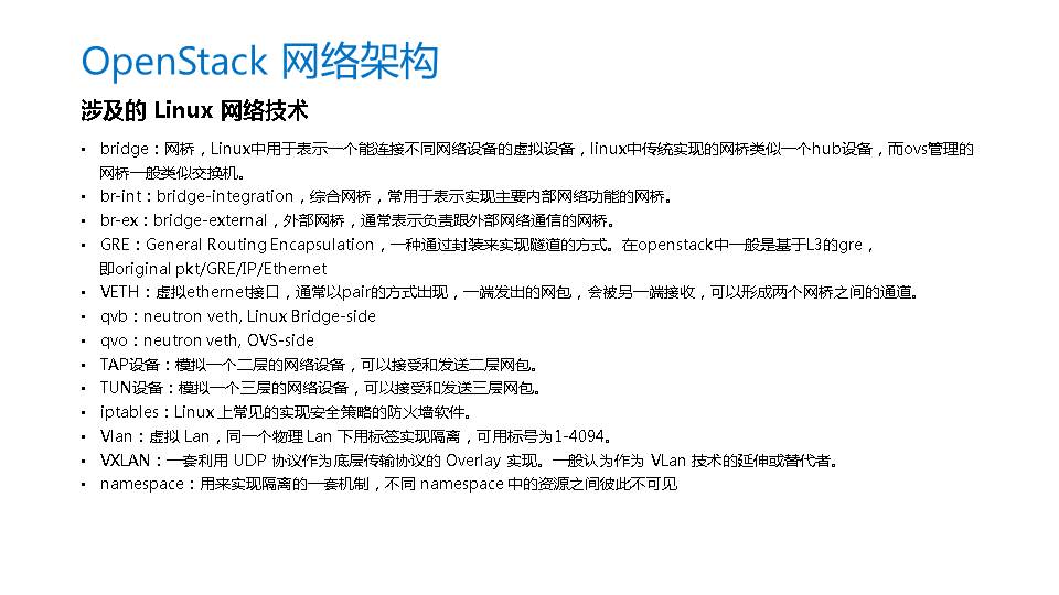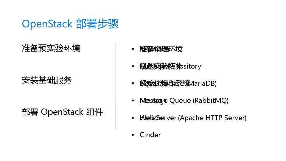 核心组件Keystone、Glance、Nova、Neutron、Cinder等。