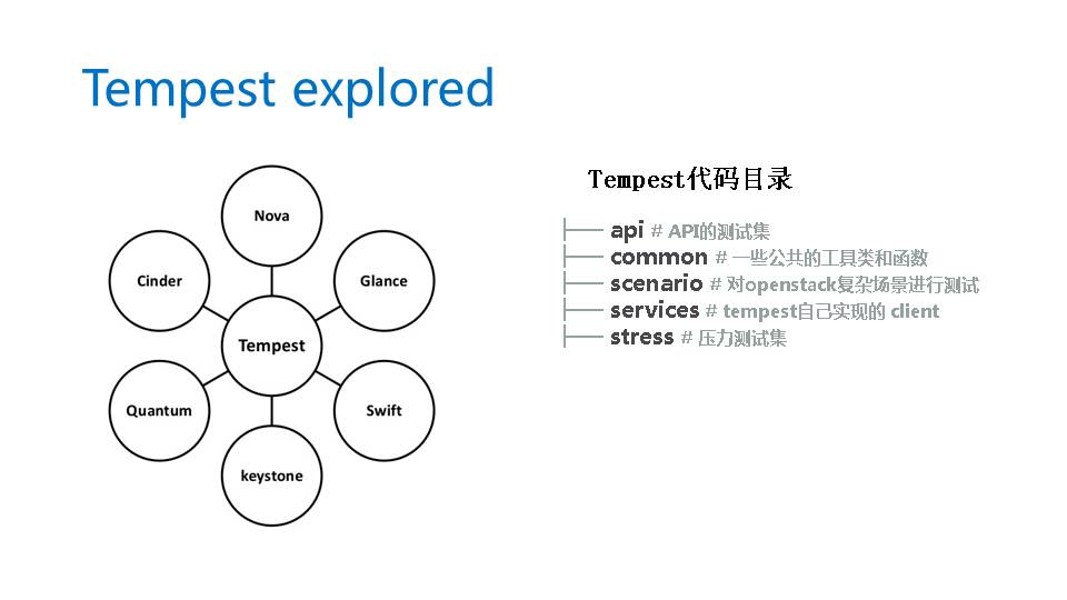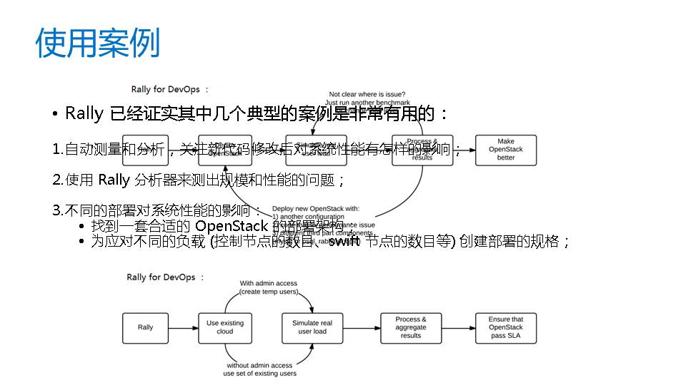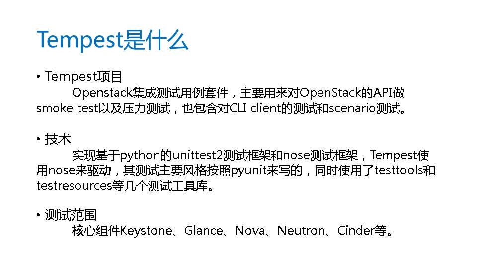 由 Rally 架构的简单介绍,我们知道 Rally 不仅可以写一些参数化的场景测试,以特定的参数去执行测试,还可以直接运行 Tempest 测试,得到 Tempest 的易于理解的结果。这正是推荐使用 Rally 的原因。