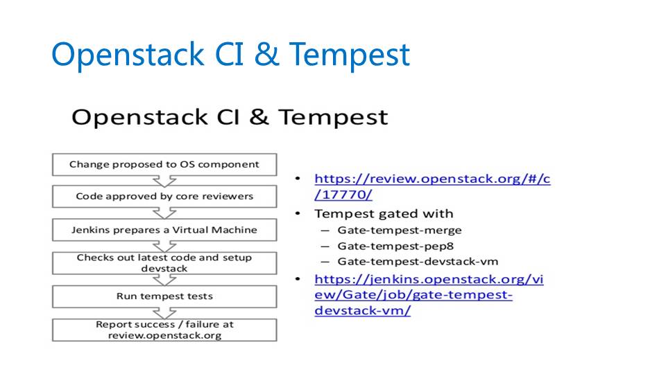 Verification- 在部署好的云中运行Tempest(或另一套特定的测试),以确认其是否正确运行,收集结果并以易于用户阅读的方式展现出来。