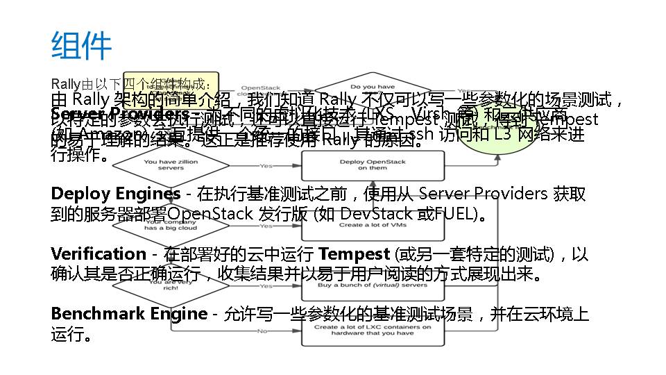 Deploy Engines- 在执行基准测试之前,使用从 Server Providers 获取到的服务器部署OpenStack 发行版 (如DevStack或FUEL)。