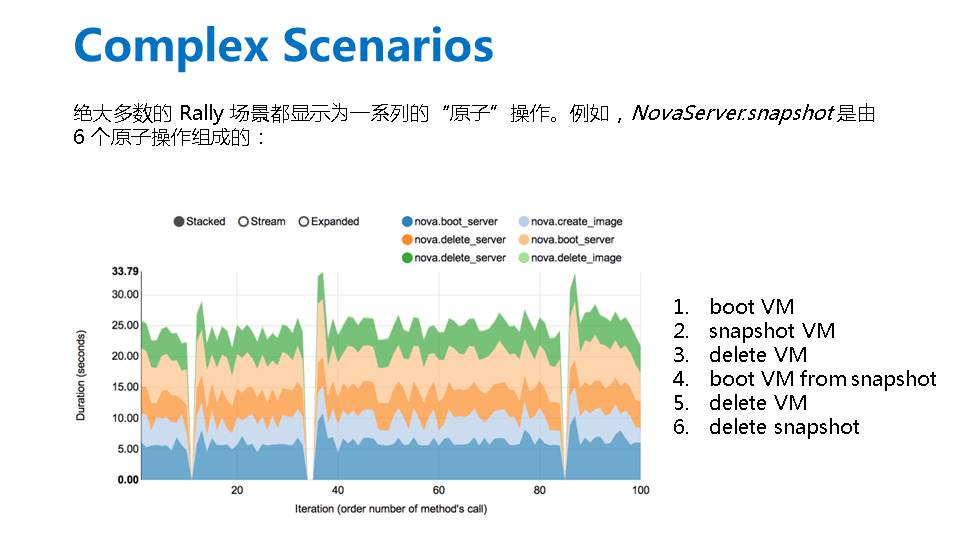 绝大多数的 Rally 场景都显示为一系列的“原子”操作。例如,NovaServer.snapshot是由 6 个原子操作组成的: