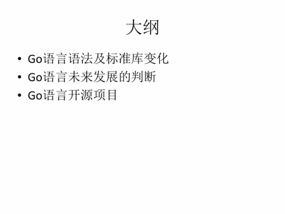 • Go语言语法及标准库变化 • Go语言未来发展的判断 • Go语言开源项目