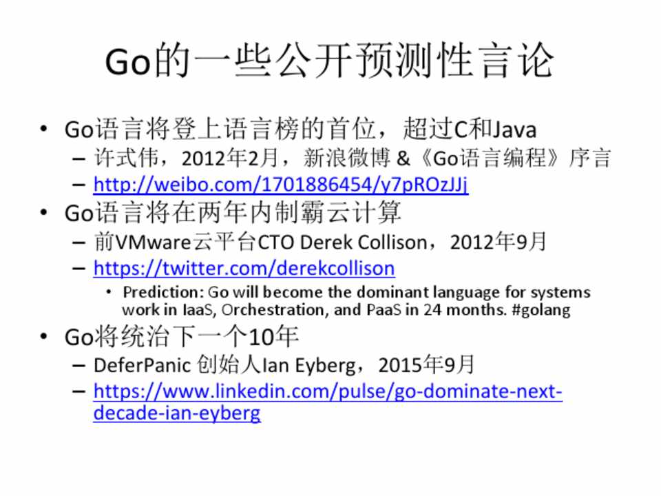 – 许式伟,2012年2月,新浪微博 &《Go语言编程》序言 – http://weibo.com/1701886454/y7pROzJJj