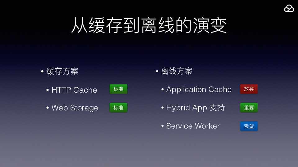 • Application Cache • Hybrid App • Service Worker