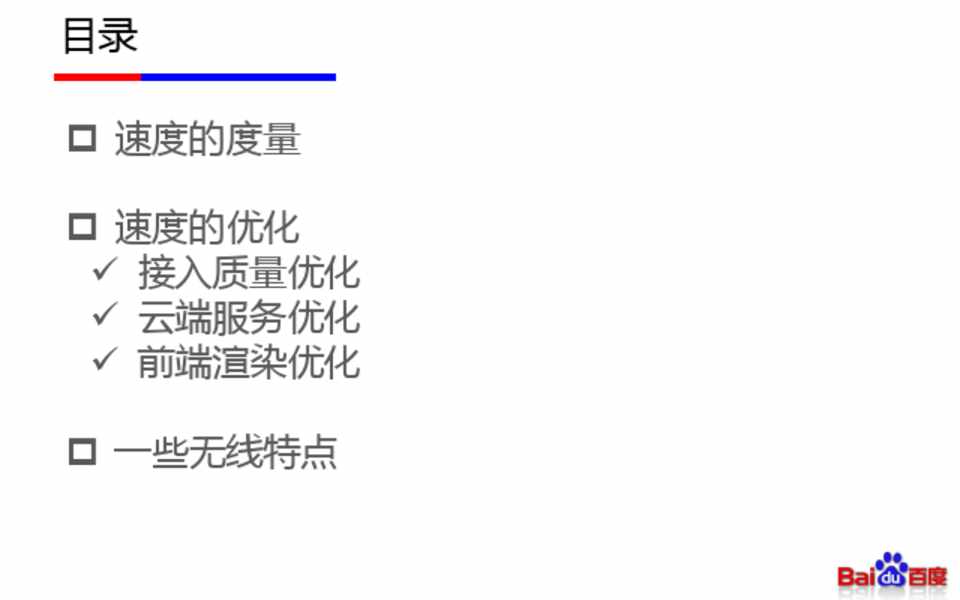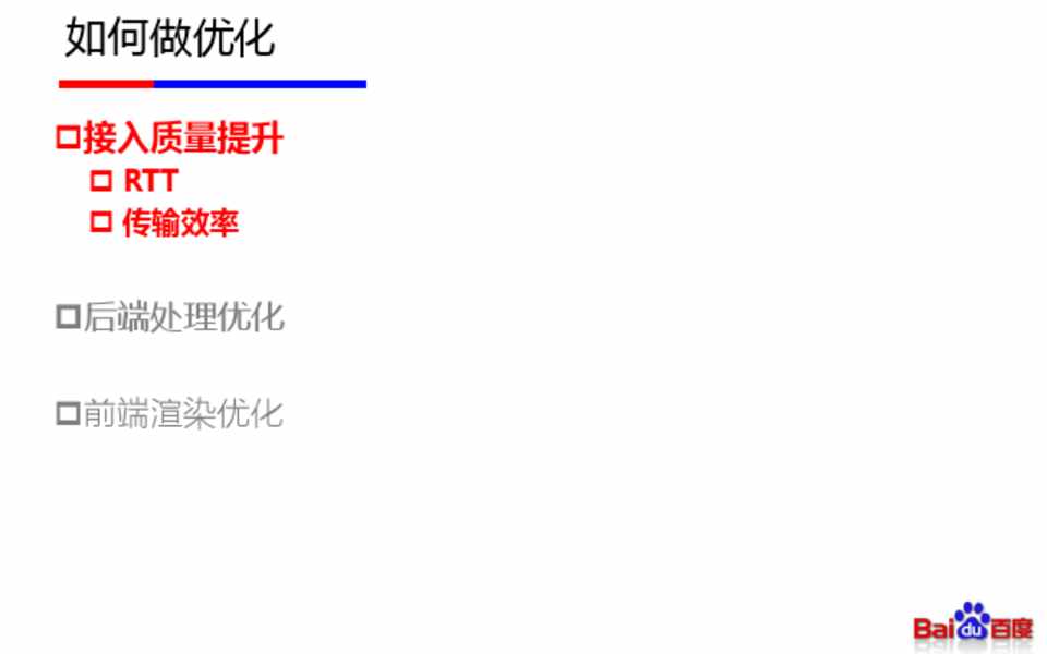 速度的优化 接入质量优化 云端服务优化 前端渲染优化