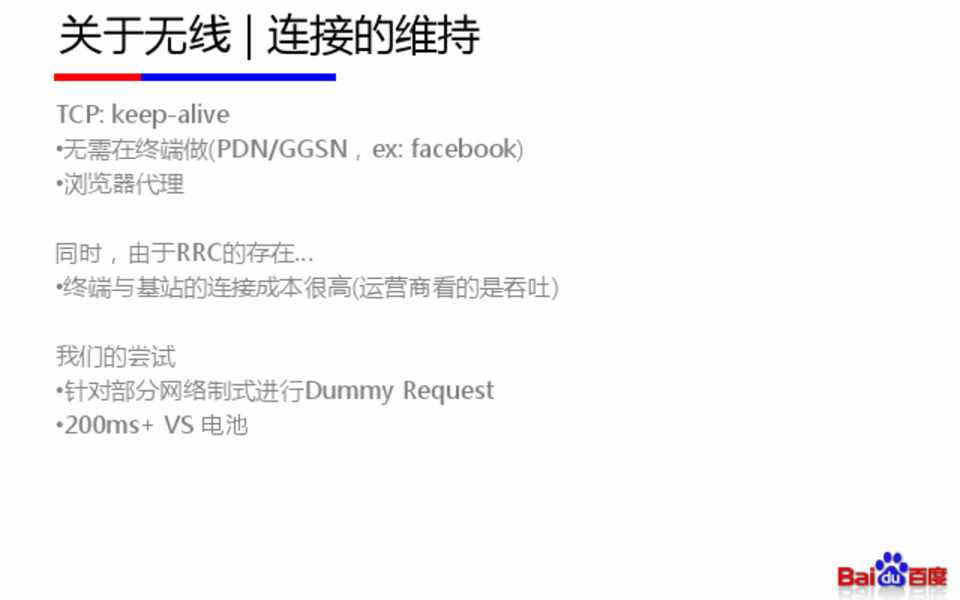 我们的尝试 •针对部分网络制式进行Dummy Request •200ms+ VS 电池