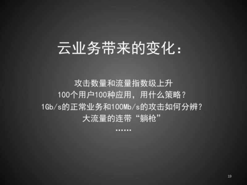 攻击数量和流量指数级上升 100个用户100种应用,用什么策略? 1Gb/s的正常业务和100Mb/s的攻击如何分辨?