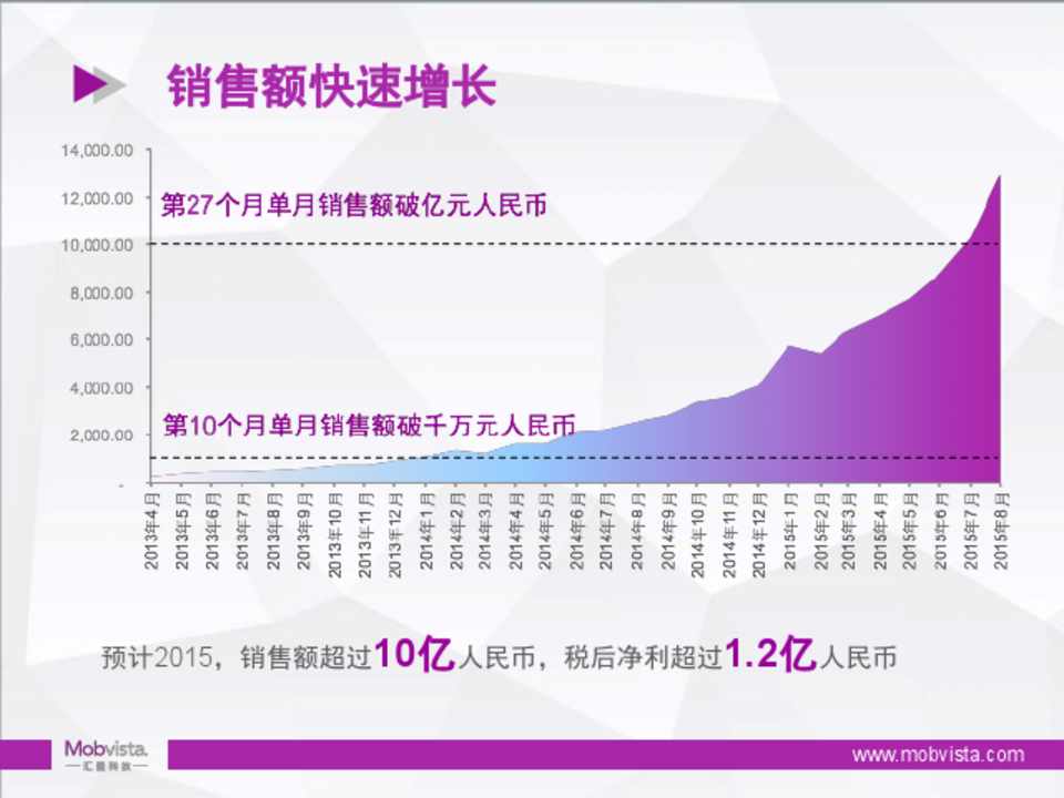 预计2015,销售额超过10亿人民币,税后净利超过1.2亿人民币