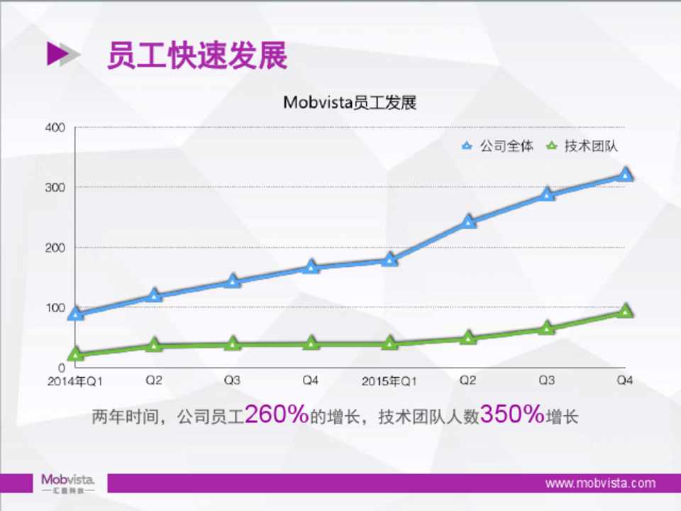 两年时间,公司员工260%的增长,技术团队人数350%增长