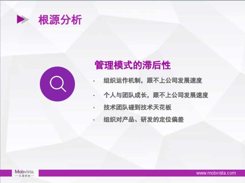 • 组织运作机制,跟不上公司发展速度 • 个人与团队成长,跟不上公司发展速度 • 技术团队碰到技术天花板 • 组织对产品、研发的定位偏差