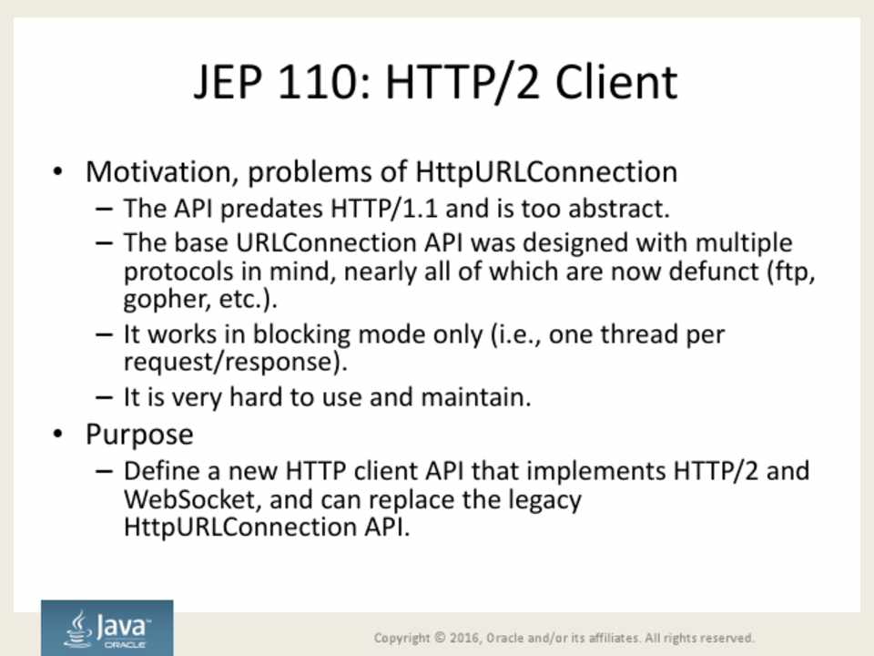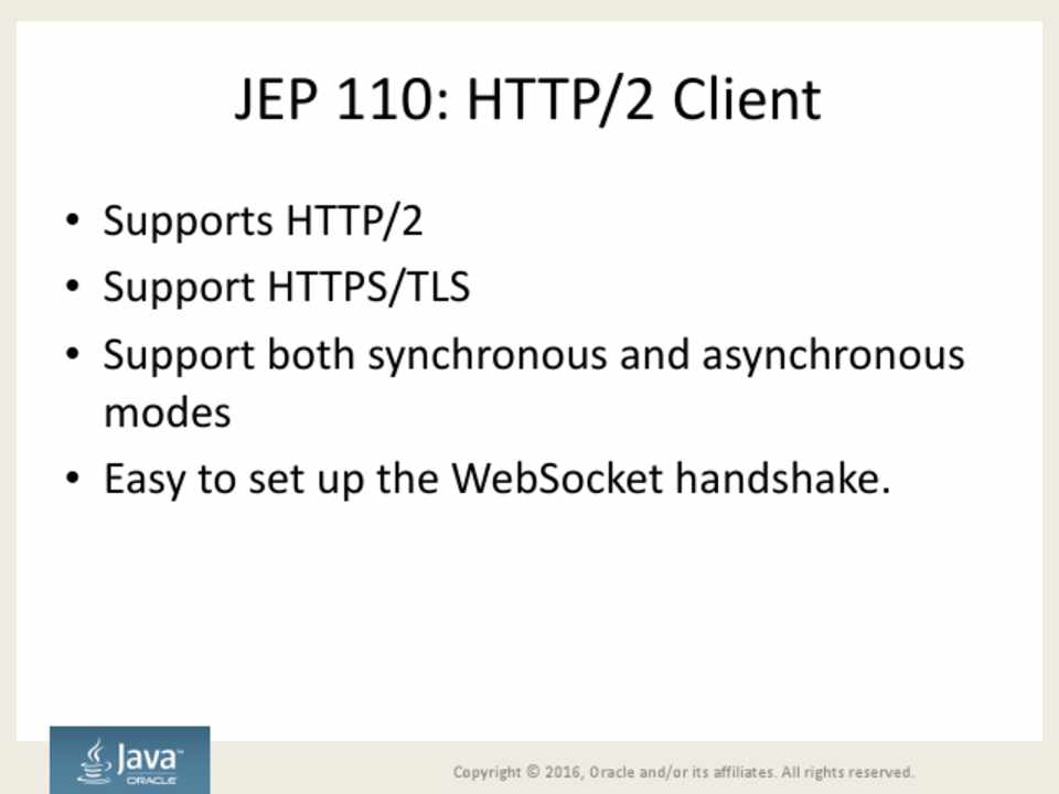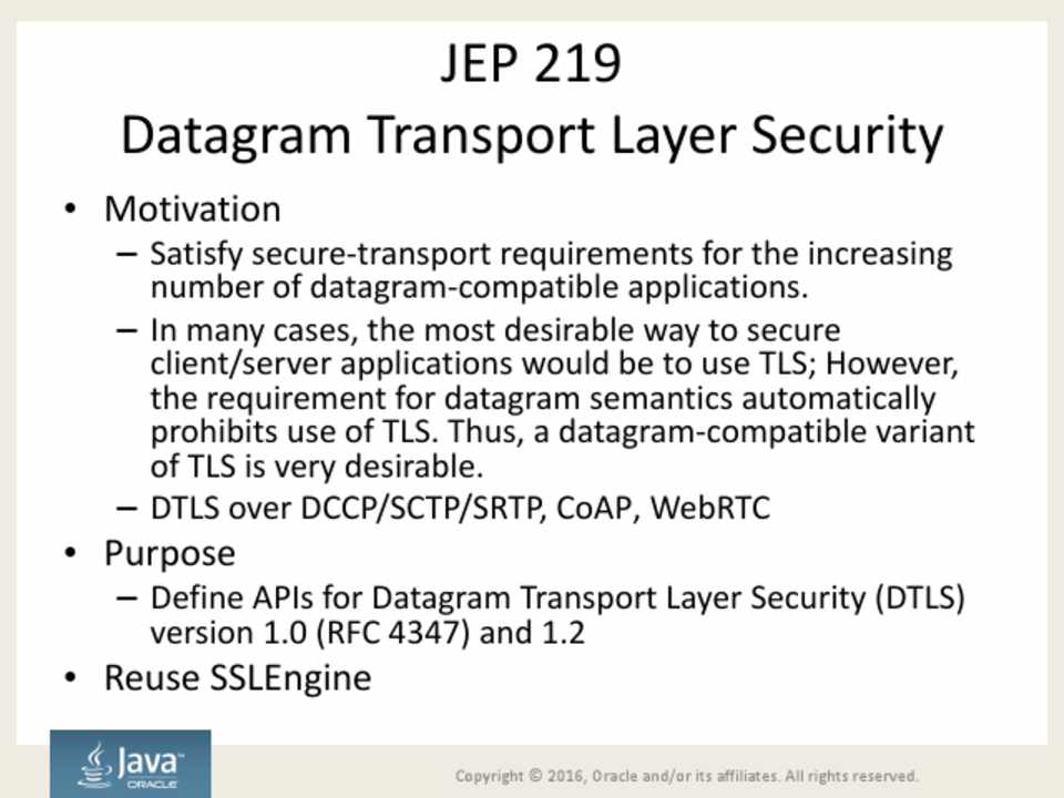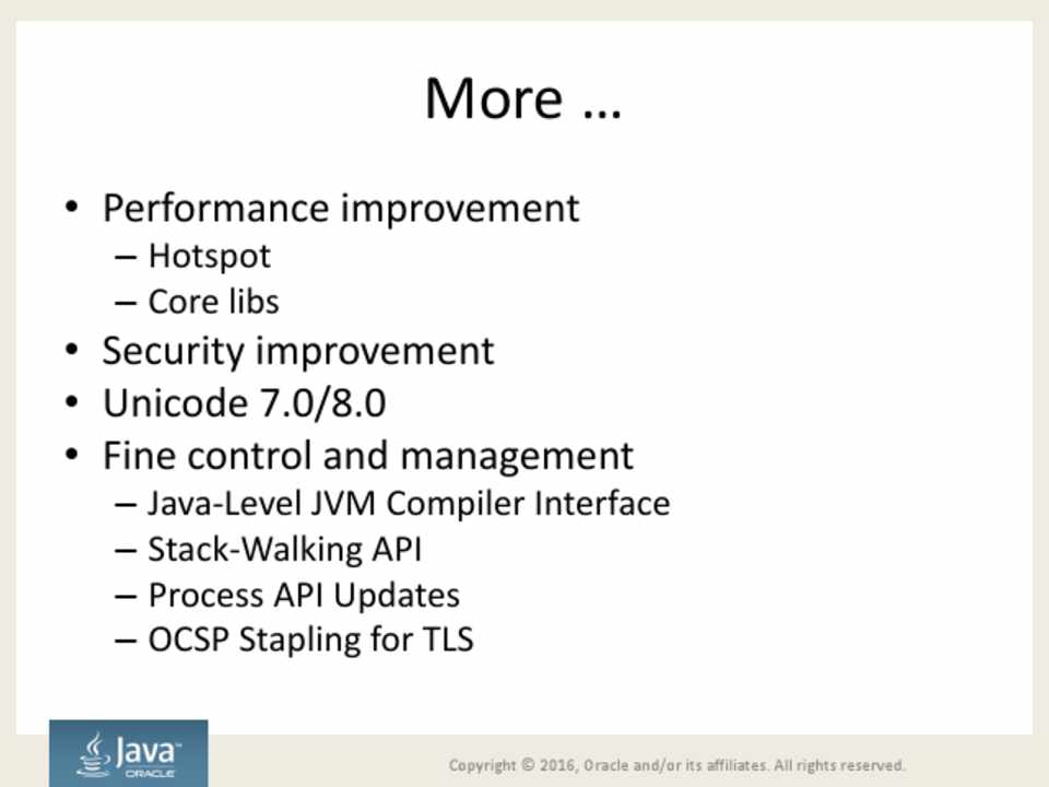 – Java-Level JVM Compiler Interface – Stack-Walking API – Process API Updates – OCSP Stapling for TLS