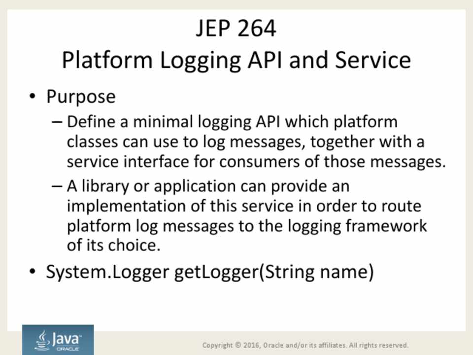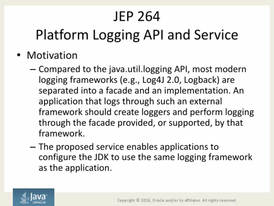 – The proposed service enables applications to configure the JDK to use the same logging framework as the application.