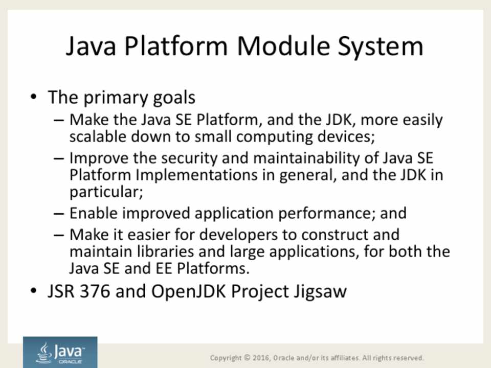 – Make it easier for developers to construct and maintain libraries and large applications, for both the Java SE and EE Platforms.
