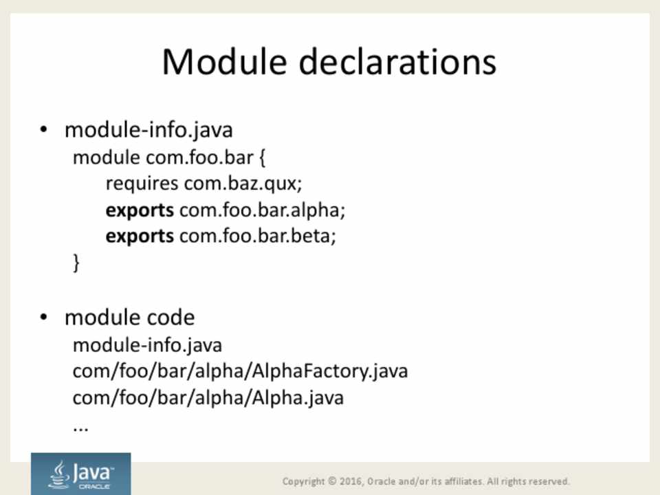 module com.foo.bar { requires com.baz.qux; exports com.foo.bar.alpha; exports com.foo.bar.beta;