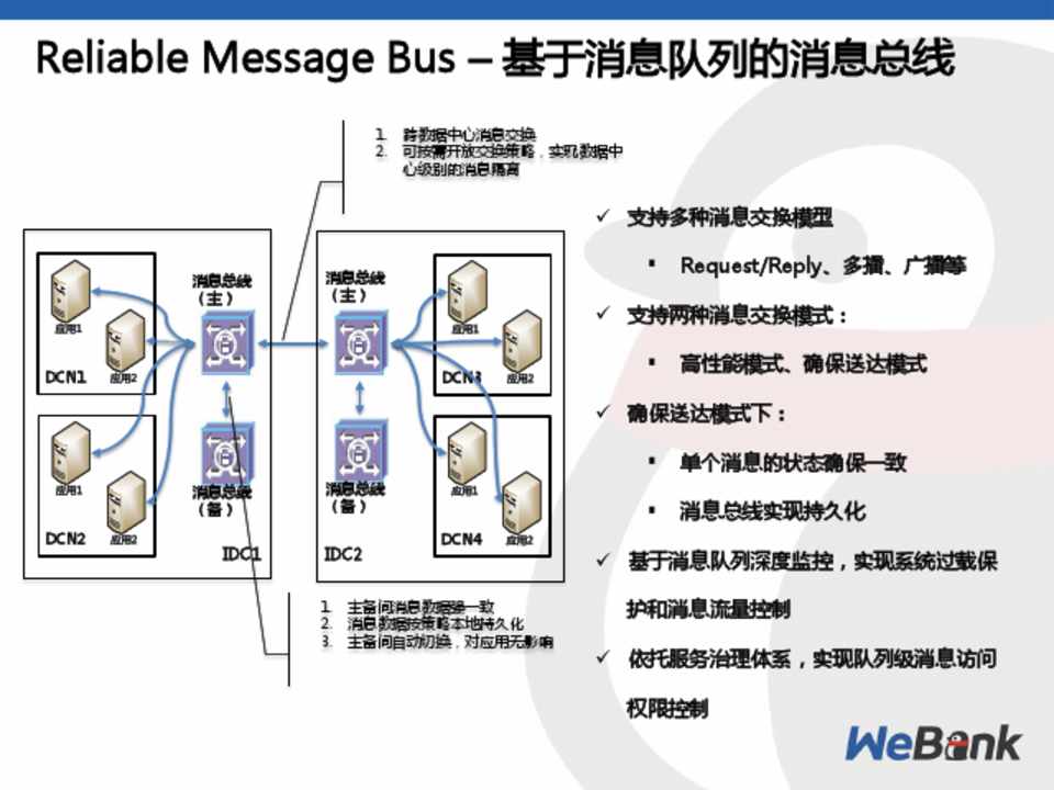 § 单个消息的状态确保一致 § 消息总线实现持久化 ü 基于消息队列深度监控,实现系统过载保