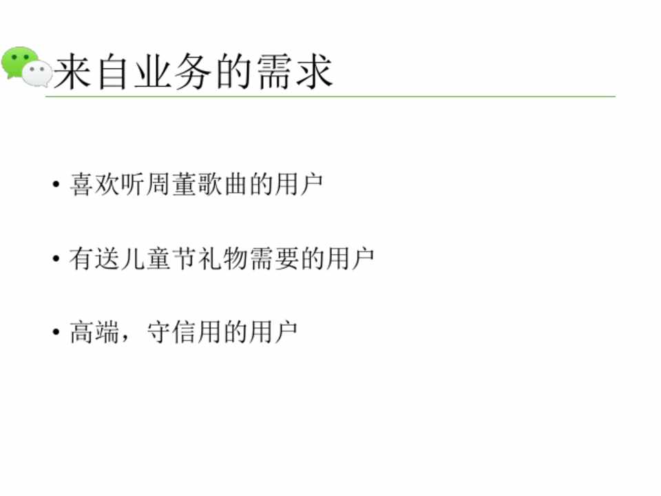 • 喜欢听周董歌曲的用户 • 有送儿童节礼物需要的用户 • 高端,守信用的用户