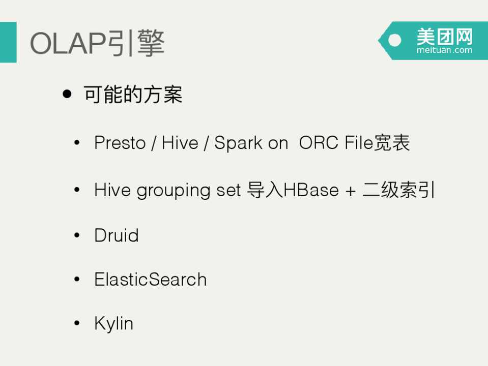 • Druid • ElasticSearch • Kylin