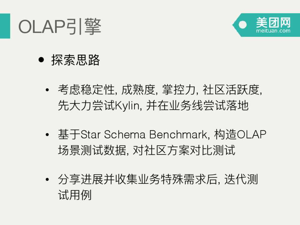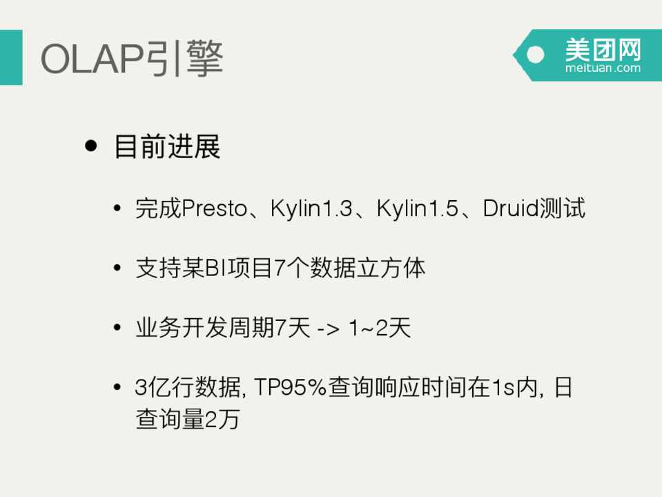 • Presto Kylin1.3 Kylin1.5 Druid