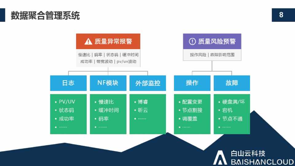 节点状态 带宽预警 质量报警 冗余报警 应用平台监控 第三方监控