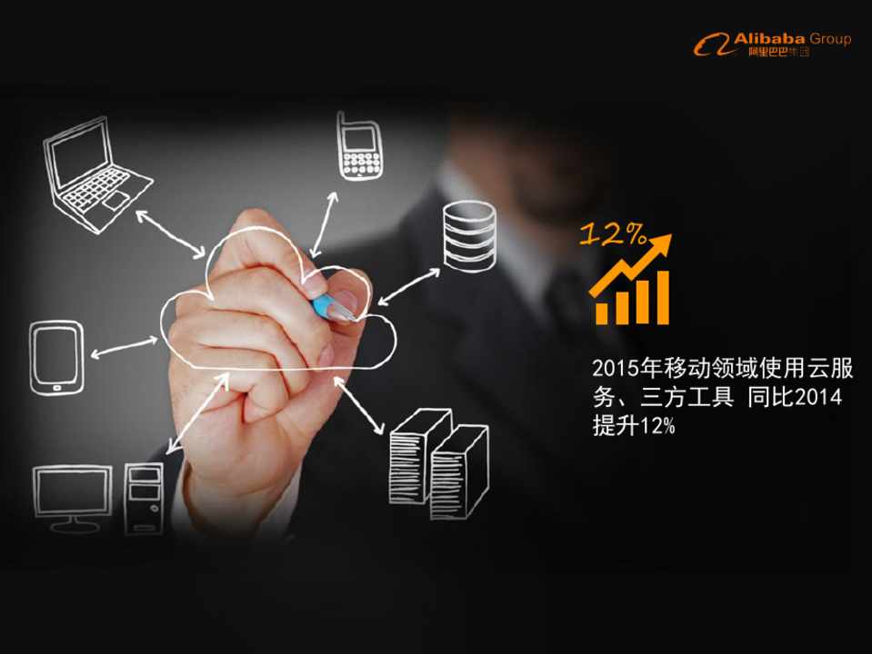 2015年移动领域使用云服 务、三方工具 同比2014 提升12%
